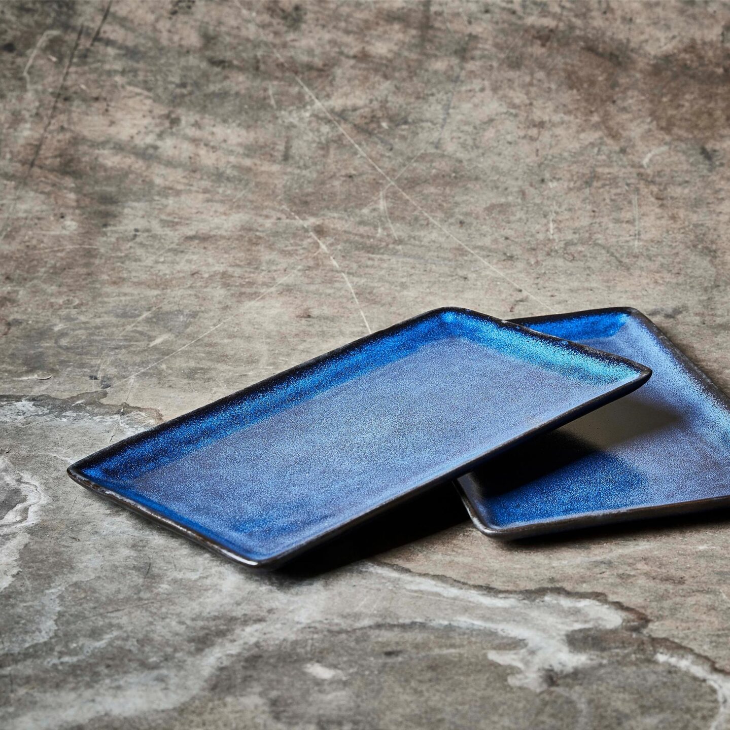 In de RAW Midnight Blue serie bevindt zich onder andere dit rechthoekige bord klein. De afmetingen van deze mooie schaal zijn 23,5 x 15 cm en is ongeveer 1.5 cm hoog. Hiermee is het bord zeer gevarieerd te gebruiken en ook geschikt als serveerbordje of om de lekkerste bijgerechten te serveren.