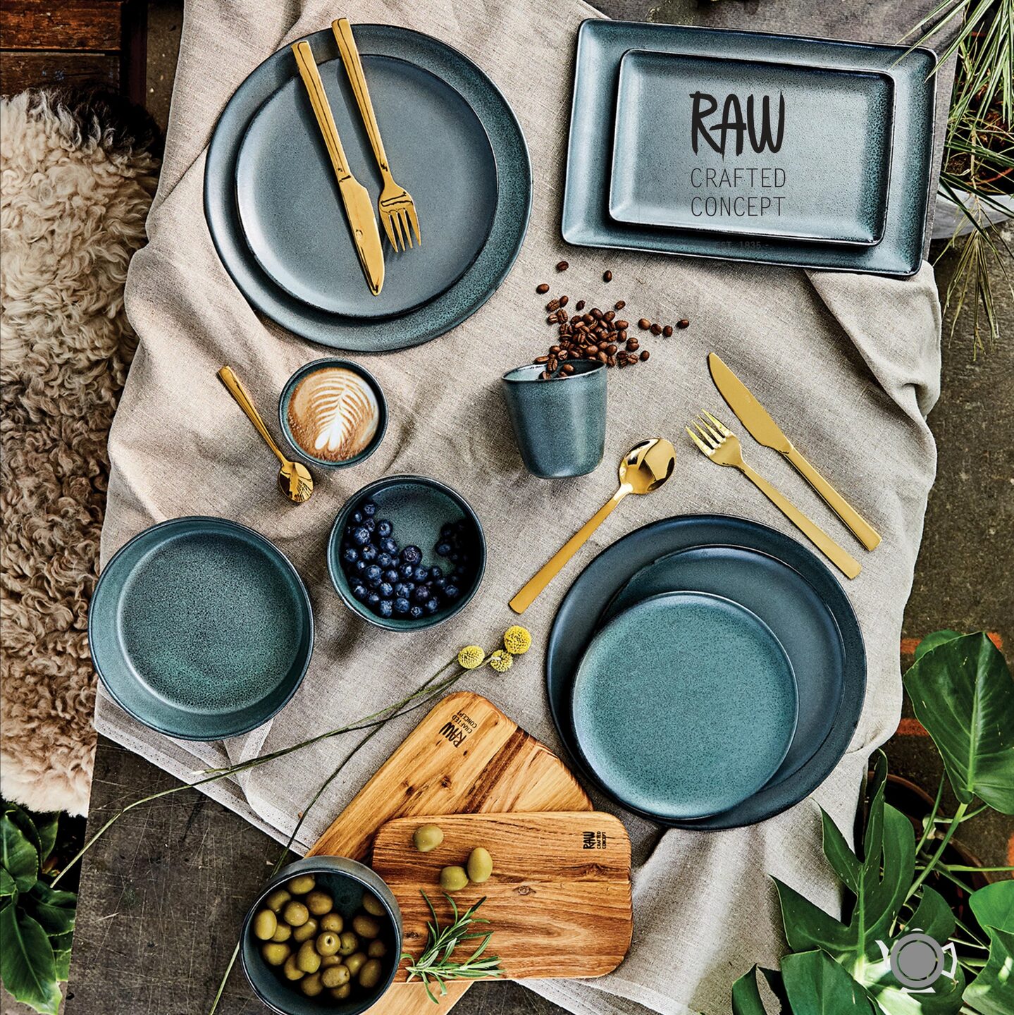 Met behulp van een techniek die slechts een paar fabrieken beheersen, is het stonewaremateriaal van AIDA RAW nordic ingelegd met kleurstof. Dit zorgt voor de rauwe maar toch kleurrijke uitstraling, die te zien is aan de onderkant van verschillende producten. Daarnaast wordt het glazuur aangebracht met behulp van speciale handwerktechnieken, wat uniek gedecoreerde producten oplevert - er zijn geen twee RAW items, die identiek zijn.