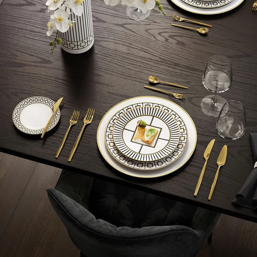 Villeroy & Boch staat bekend om zijn hoogwaardige servieswerk met een chique en sfeervol design. De serie MetroChic van Villeroy & Boch wordt gemaakt van Premium Bone Porselein. Dat maakt het porselein sterk en helderwit. De klassieke kleuren wit, zwart en goud zorgen voor een prachtig gedekte tafel met een luxe uitstraling. Het geometrische patroon geeft een geheel eigen stijl aan het servies.